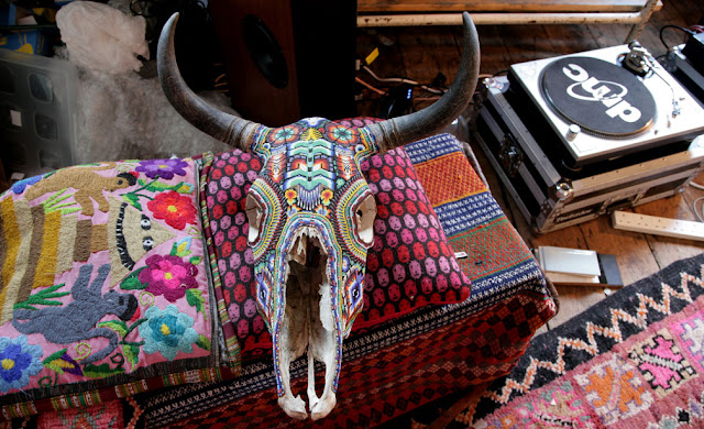 Love them or Hate them you have got to admit these beaded skulls are really something different. Whilst travelling in Mexico Artist Catherine Martin discovered these stunning handmade beaded skulls made by Huichol people. Catherine now collaborates with the Huichol people, sending over her own designs to make these unique colourful skulls which, are available to buy via her online shop Our Exquisite Corpse. So the question on everyones lips, are they real skulls? In Catherines words "The skulls are made in Mexico City and they're made from a type of resin. They're made up in batches in Mexico City and then the skulls are taken to Puerto Vallarta. The Huichol come down from the Sierra Madre mountains and pick them up and take them back up to the mountains. They coat a layer of beeswax over the top and then hand-bead it, so they use a little needle and they just thread the needle with these tiny little beads and just painstakingly bead it, one by one. The beads are actually pressed in, that's why you have to be really careful with them, they can't be near the sun or a heater or a fire. It's a vulnerable surface so you have to be super careful." To see the full set of images and to read the interview with Catherine visit LN-CC here